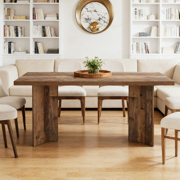 Eye-Catching Design - This vintage walnut finish large dining table is a standout addition to any space, fitting in with any decor style from farmhouse to modern.