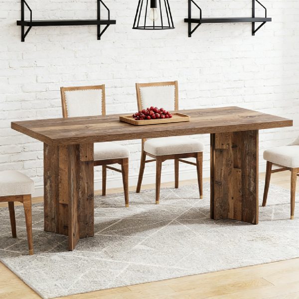 Solid & Stable - With a 1.57'' thick E1 chipboard construction, this farmhouse kitchen table is sturdy, durable, and able to handle daily use. It can carry a load of up to 300 lb.